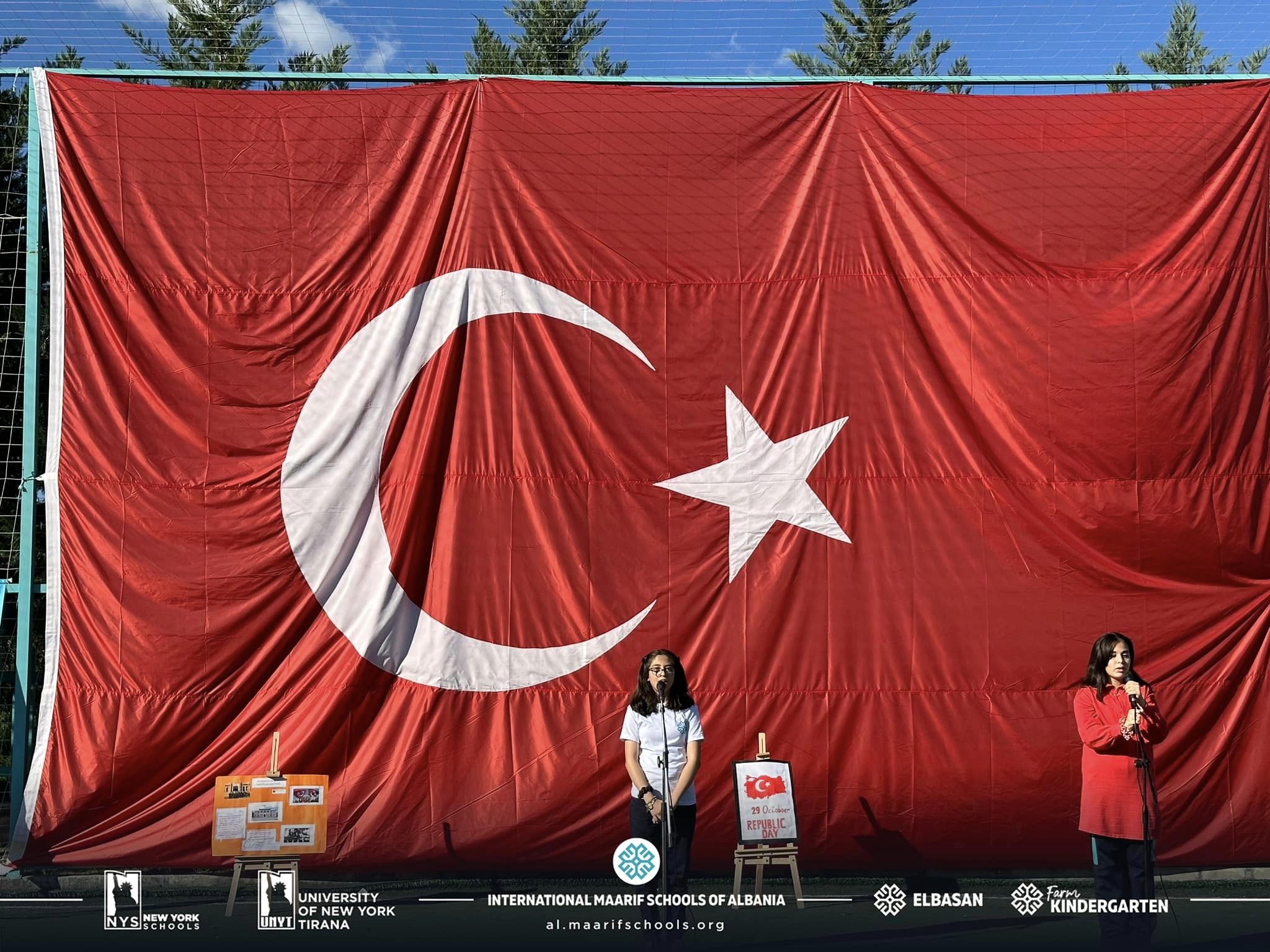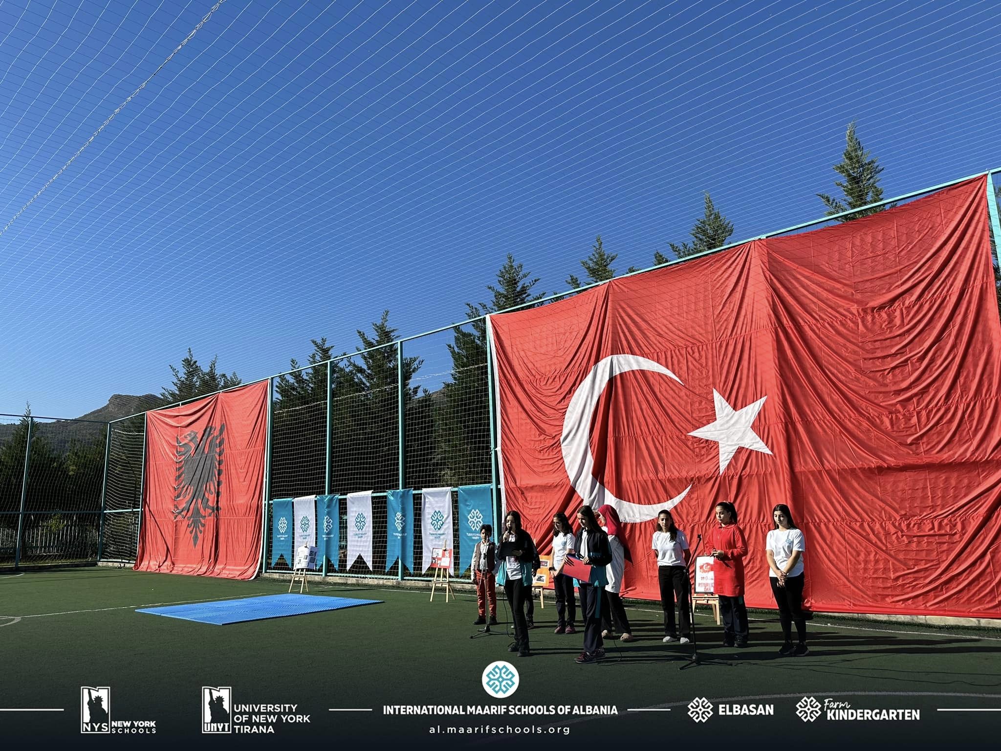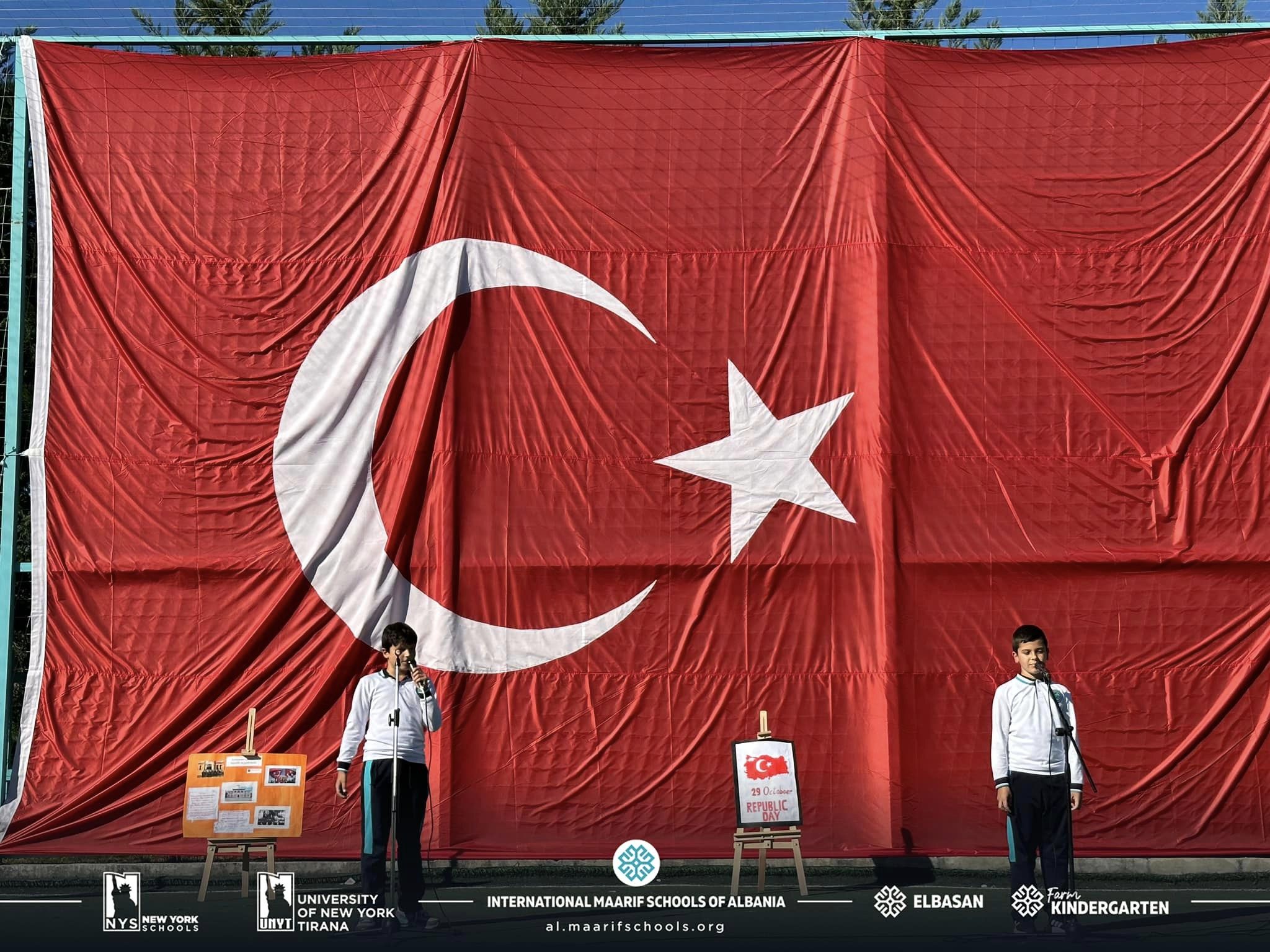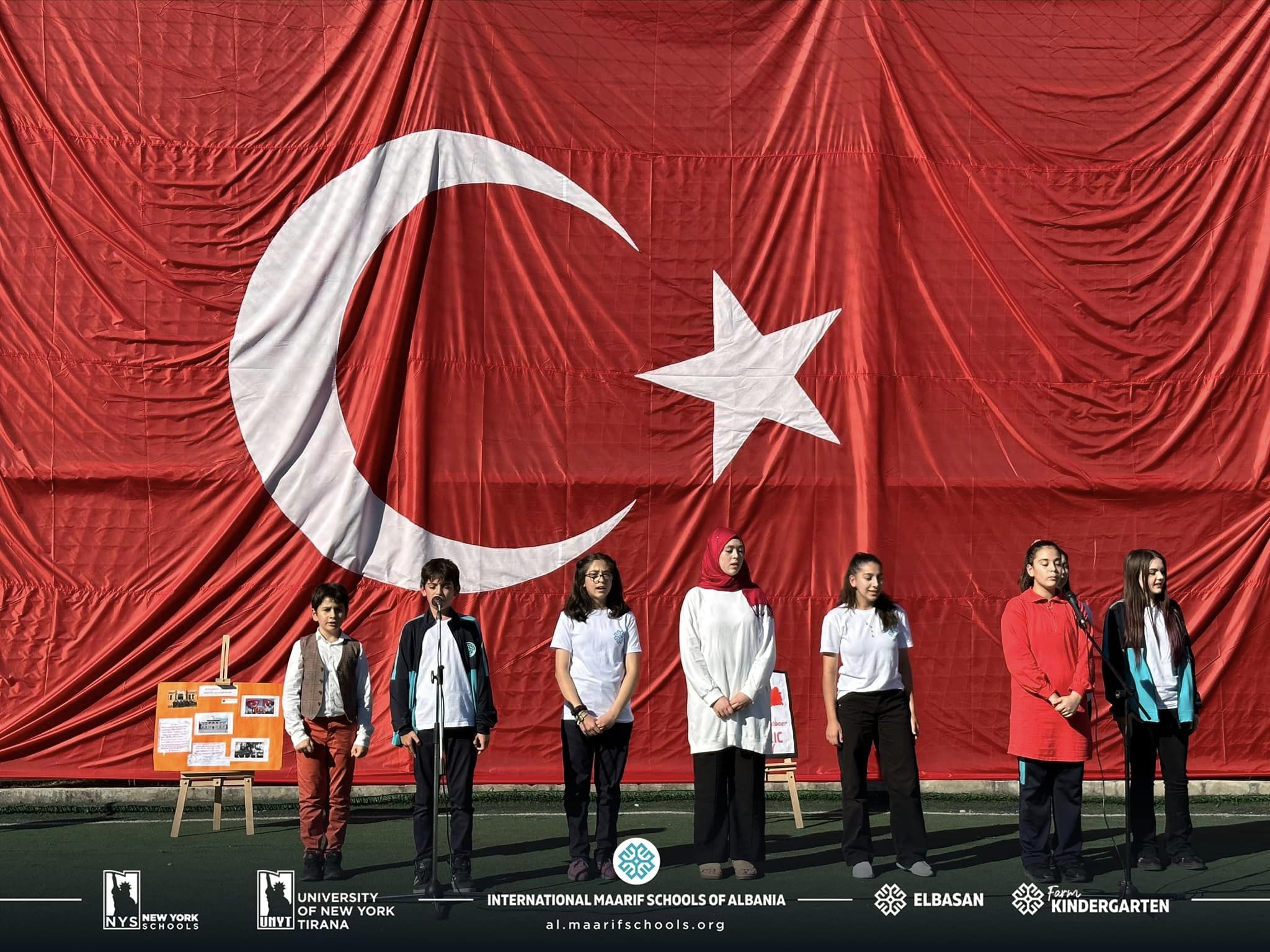 Në kuadër të festës së Republikës së Turqisë, studentët dhe stafi i kampusit Maarif Elbasan organizuan një aktivitet të këndshëm. Nxënësit tanë kënduan dhe kërcyen valle tradicionale. Ata recituan edhe poezi të ndryshme nga poetët e njohur turq, duke krijuar një atmosferë festive për të gjithë të ftuarit. Familja e madhe e Kampusit Maarif Elbasan ka kënaqësinë të përcjellë urimet tona të përzemërta dhe urimet më të mira për popullin e Republikës së Turqisë.