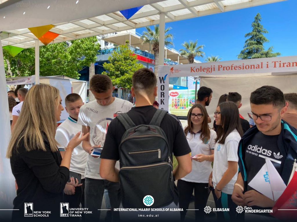 Today at the “Work & Study 2021” fair, organized by the Ministry of Education, Sport and Youth and the Chamber of Commerce and Industry, the Mayor of the municipality of Elbasan, Mr. Gledian Llatja as well as the Minister of Education, Sport and Youth, Mrs. Evis Kushi, visit to the International Maarif Schools of Albania booth.